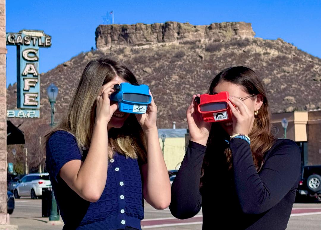 CASTLE ROCK HIGH NOON had a vision of producing ViewMasters with images featuring key town landmarks from the turn of the 20th Century to celebrate the 150th year of the founding of Castle Rock, Colorado. The Town of Castle Rock provided funding through a grant, the Phillip and Jerry Miller Library provided images and our Young Rotarians (Interact) of Colorado Early Colleges Castle Rock selected the images. These ViewMasters are now available at the Castle Rock Museum and the Castle Rock Chamber of Commerce for guests and visitors to see what Downtown Castle Rock looked like, in 3D!