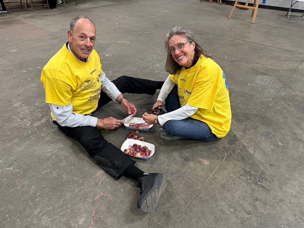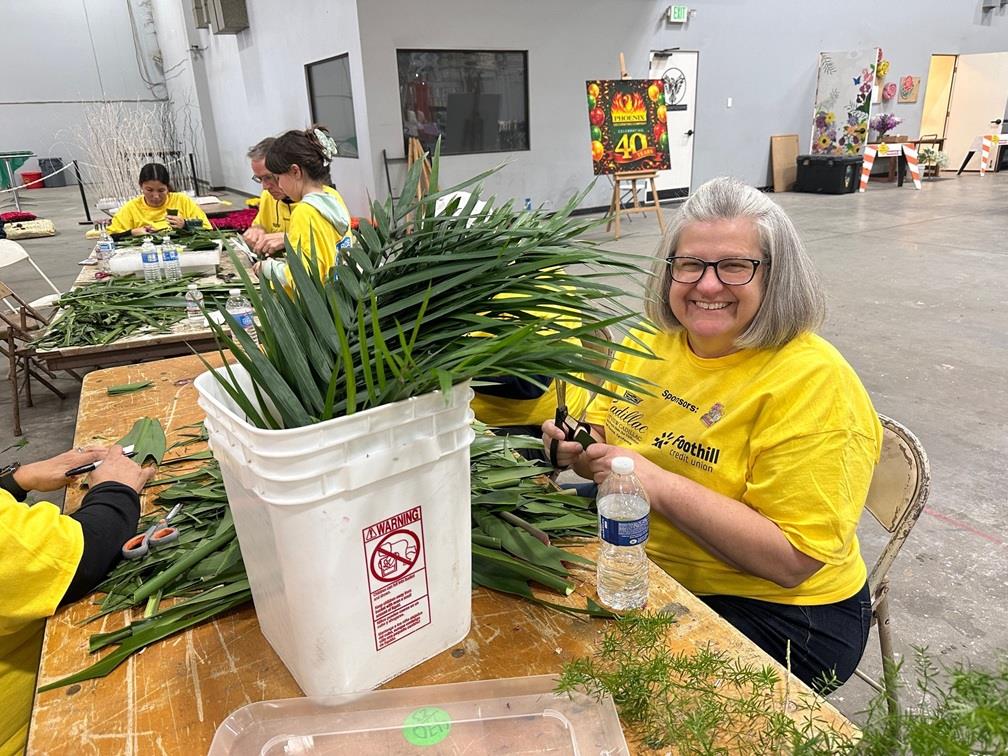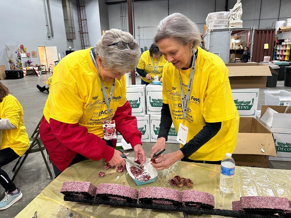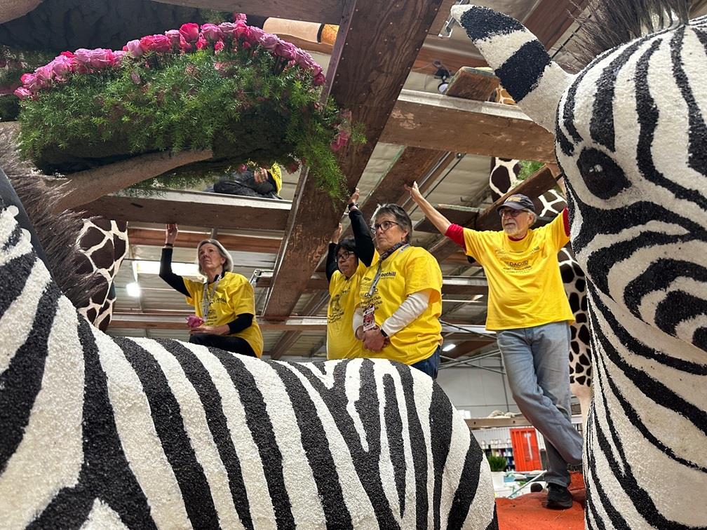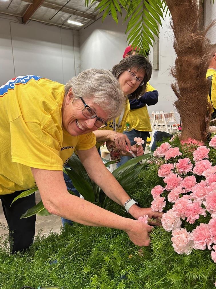 This year, District Governor Cindy Rold brought a group of D5450 Rotarians to Pasadena to decorate the float and watch the parade. Special thanks to Karlyn McCrumb, member of the Littleton Rotary Club, for being the point person in making the arrangements. 25 Rotarians, spouses, and friends came to experience the magic. From cutting banana leaves to be the scales on the snake to putting roses into the float, we made our mark.